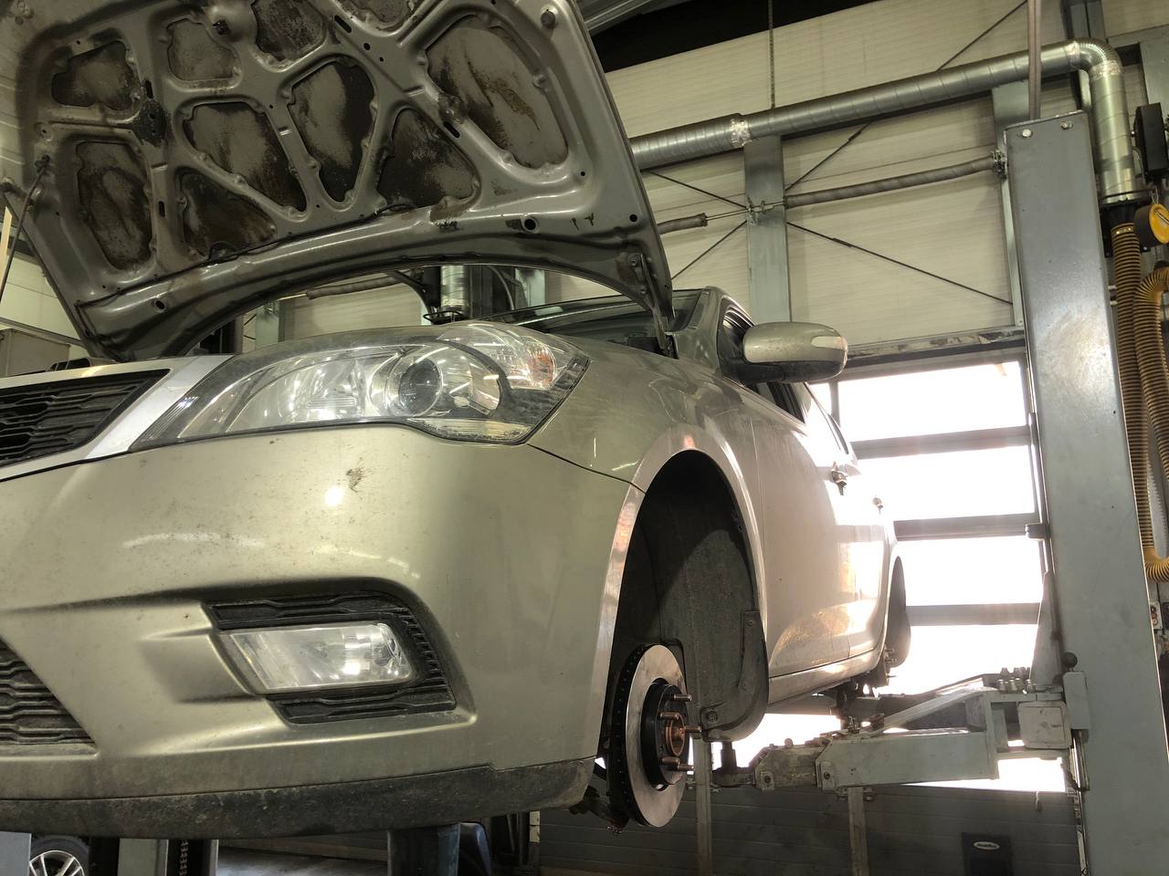 Кия ceed-2011г- замена сайлентблоков передних рычагов, замена задних и передних тормозных дисков и колодок, замена прокладки клапанной крышки, замена переднего ступичного подшипника